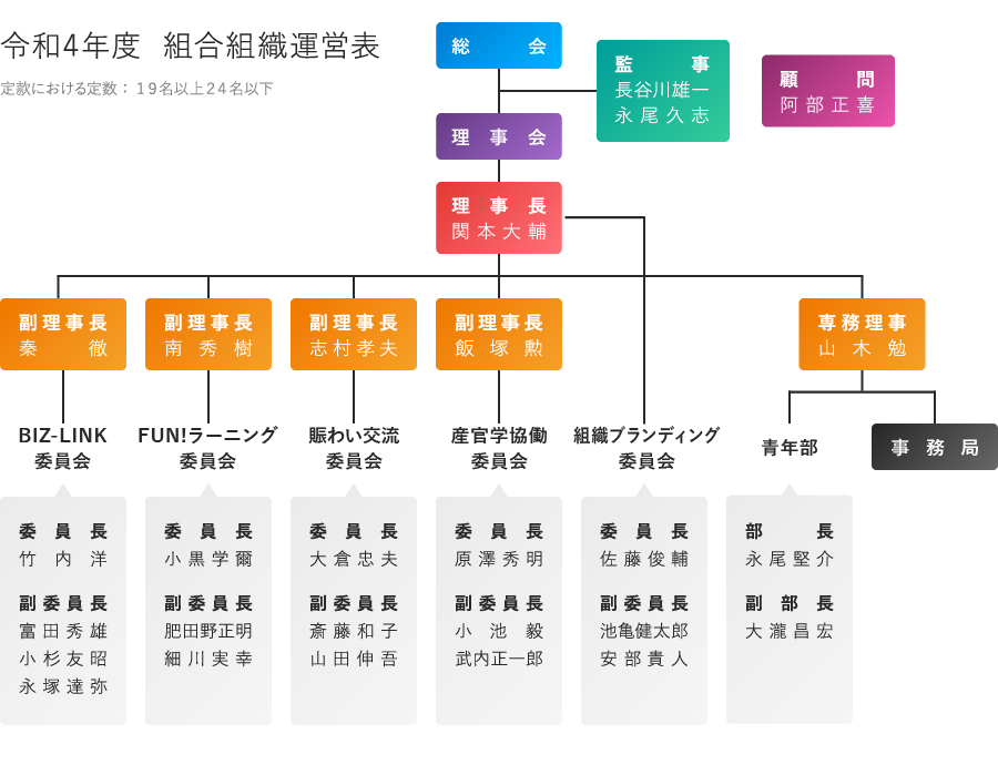 100社を超える加盟組合員、顧問には県工業技術総合研究所や県内主要大学・ 短大も名を連ねています。 こうした様々な分野の人々との交流を図る場を数多く設けると共に、 外国人研修生を受け入れるなど国際交流も積極的に行っています。
