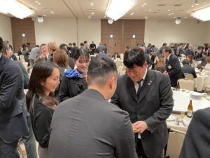 懇親会では元谷氏との名刺交換の列が絶えることなく続き、場内のあちらこちらで活発に交流する姿が見受けられました。
